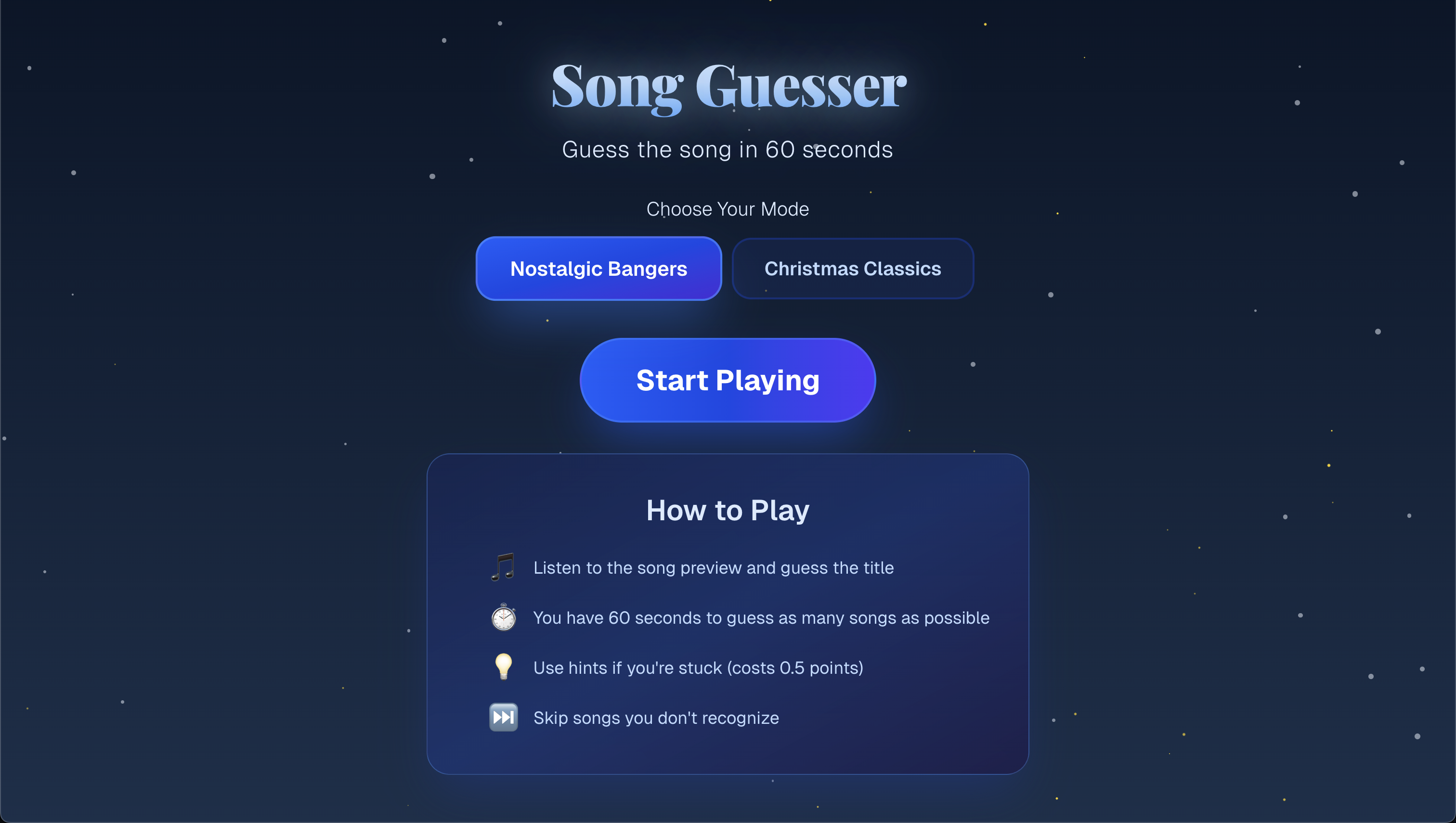 A Christmas-themed song guessing game that will transport you to nostalgic times..